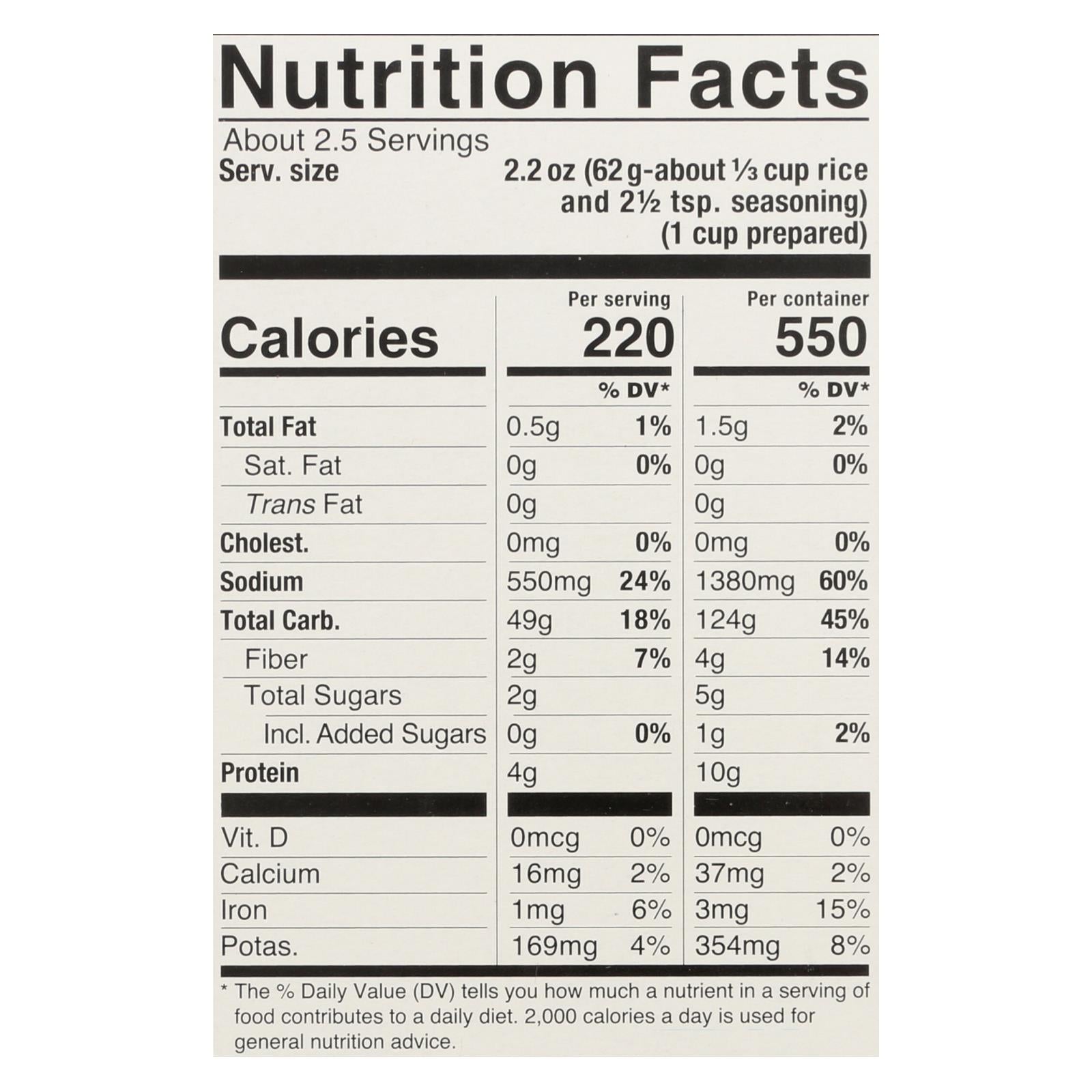 ingredients : parboiled white rice;seasoning;onion;sea salt;tomato;garlic;spices [*black pepper;cayenne;chili;cumin];green bell pepper;cane sugar;brown rice flour;rice concentrate;sunflower oil;citric acid;natural garlic flavor