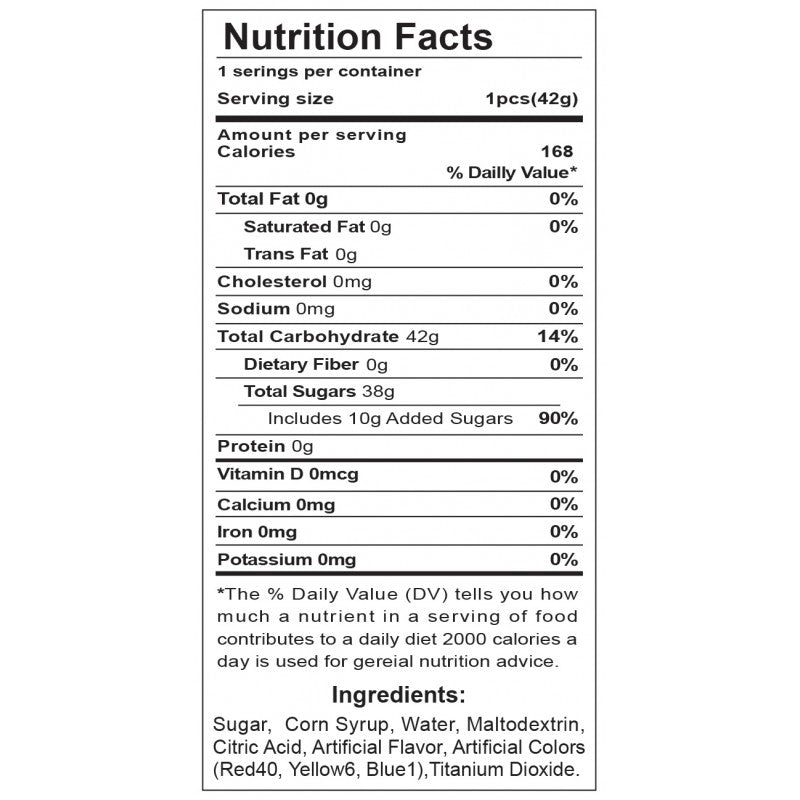 Features: Vanilla Flavored, Female Torso Lollipop. Ingredients: Sugar, Corn Syrup, Water, Maltodextrin, Citric Acid, Artificial Flavors, Artificial Colors: Red number 40, Yellow number 6, Blue number 1, Titanium Dioxide. Size length 7.00 inches, width 4.00 inches, height 1.00 inch. Weight 0.25 pound. Nutrition facts The daily value DV tells you how much a nutrient of food contributes to a daily diet of 2000 calories a day is used for general nutrition facts. Amount serving size 1 piece. Calories 168. Total carbs 42g = 14%. Total sugar 38g = 90%. 1.5 ounces. Adults only. Chocking hazard for small children. Categories: Party Games, Gifts, Supplies, Party Favors, Adult Gags, Gifts and Novelties, Lollipops. 2022.