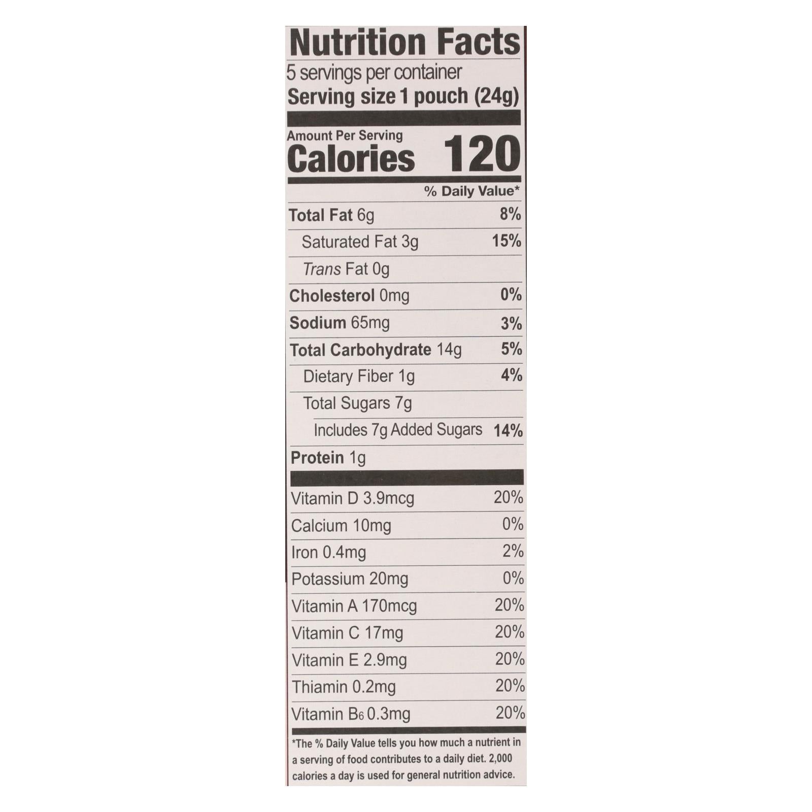 Usda organic. Certified organic by pro-cert. Nut free. Certified gluten free by gfco. Certified vegan. Vegan.org. Made in a dedicated peanut and tree nut free facility. Non gmo project verified. Nongmoproject.org. Free from nuts & safe for schools. Nutrients from vegetables. Allergy friendly: dedicated facility free from the following common allergens: peanut; soy; sesame; tree nut; dairy; fish & shellfish; wheat & gluten; egg. What makes this madegood product? contains nutrients from vegetables; made with whole grain. Www.madegoodfoods.com. Recyclable. Fsc: mix - paper from responsible sources. Www.fsc.org. Product of canada.