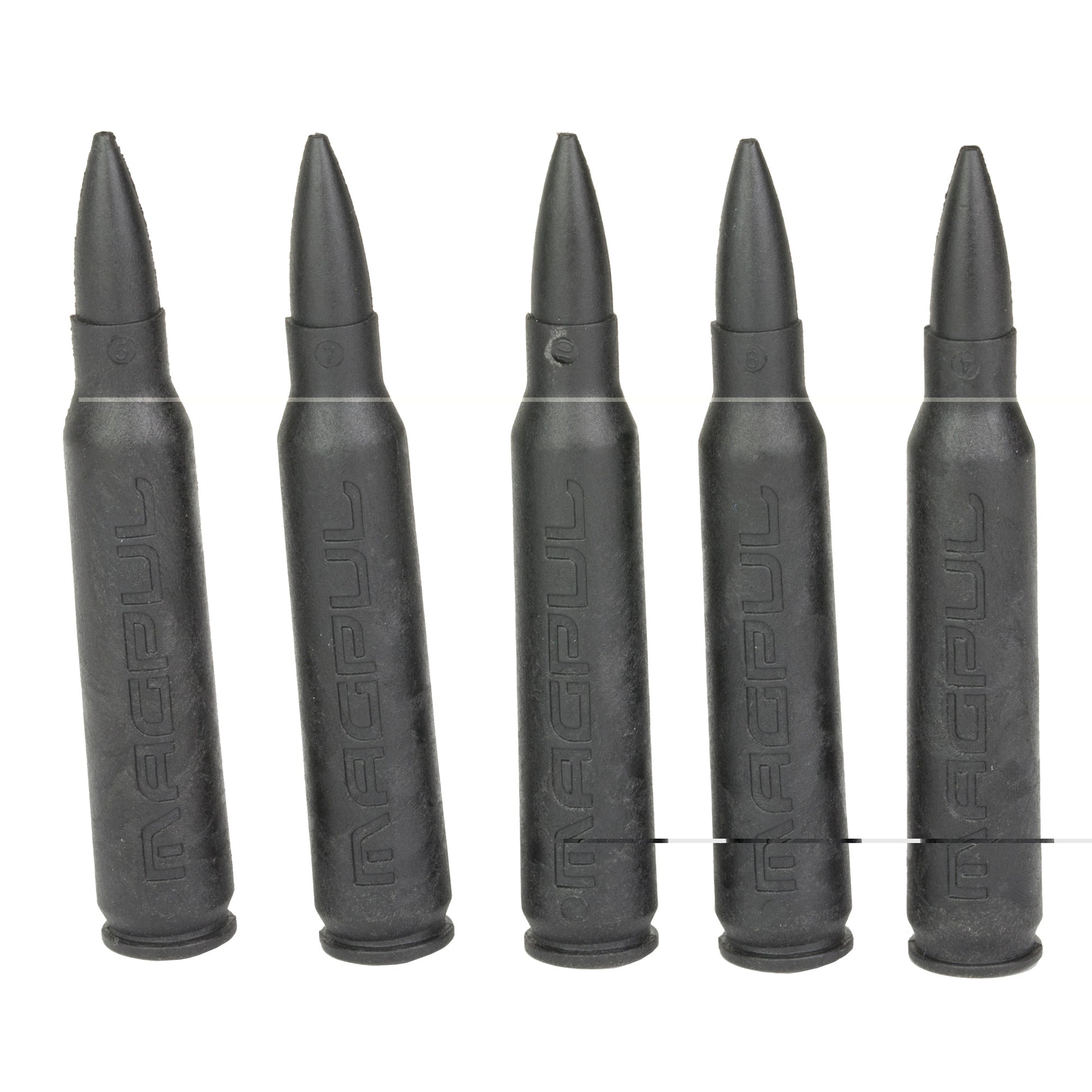 A five pack of 5.56x45 (.223 Remington) Dummy Rounds made from proprietary hard polymer. They are useful for gun handling, reloading and malfunction drills, as well as for analyzing shooting procedures.