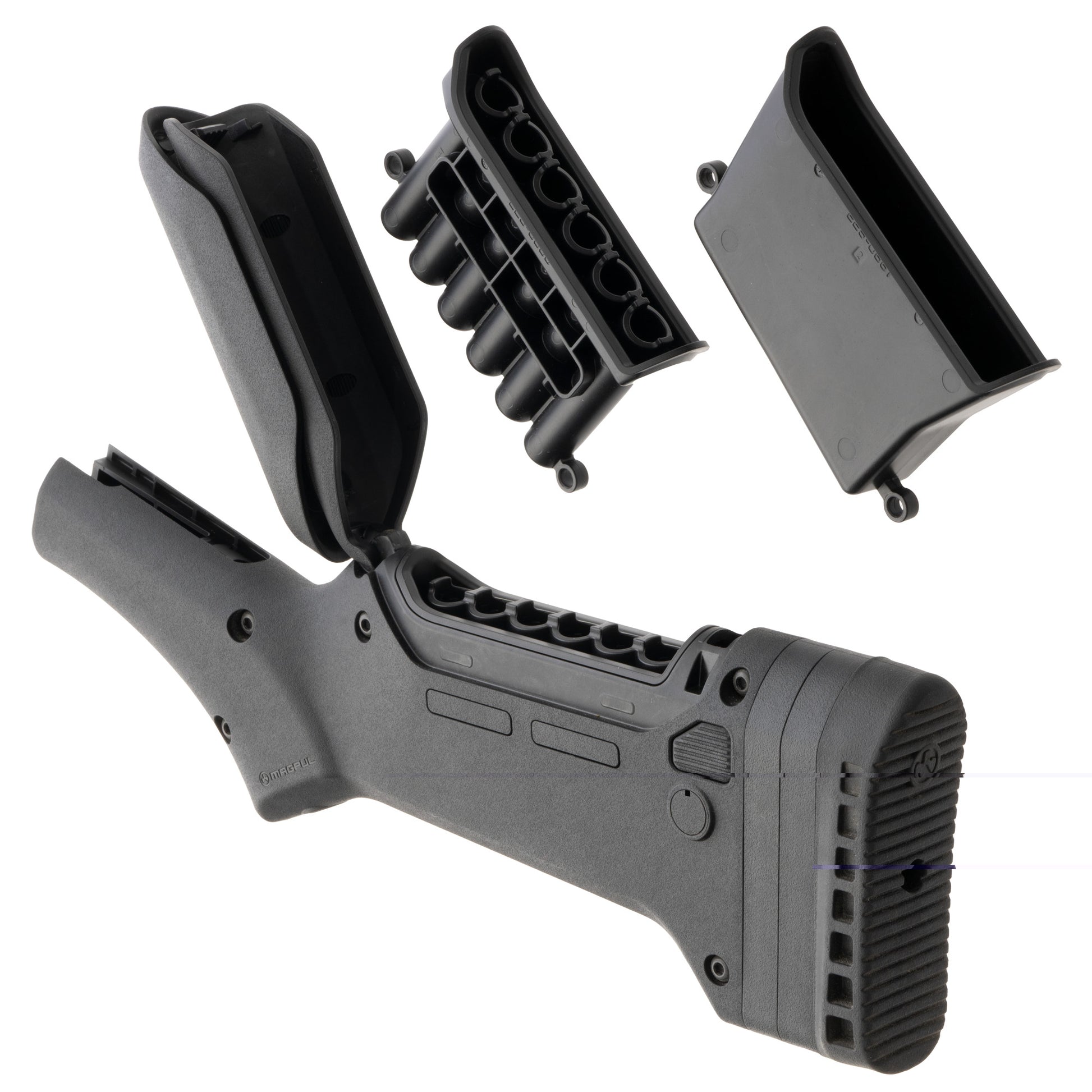 The ELG M-LOK Stock is designed to provide Marlin lever-action rifle shooters a stock with maximum adaptability that optimizes their iconic firearm. With adjustable length-of-pull (LOP) and comb height for various types of optics, storage of extra ammunition or accessories in a weatherized portion of the stock, and the ability to attach various Magpul M-LOK accessories and slings, Magpul brings new capability to the lever-action rifle. The stock allows for 1.5 inches of overall LOP adjustment (from 12.5" to 14.0" in 0.5" increments.) It also ships with a cheek riser and two (2) 0.25" shims for a total comb height adjustment of 0.75"" which attaches to the internal storage compartment door. The stock has an internal storage area, complete with a quiver for six (6) .45-70 Govt or 30-30 Win cartridges, and an open storage compartment insert. The ELG M-LOK Stock also accepts Magpul Type 1 and Type 2 QD cups for a mounting a sling, and two (2) M-LOK slots reside on each side for further accessory mounting options such as an ammo saddle. Rounding out the stocks state-of-the-art feature set is a sling swivel located in the bottom of the pistol grip which allows for shorter slings and a higher muzzle-down carry option.