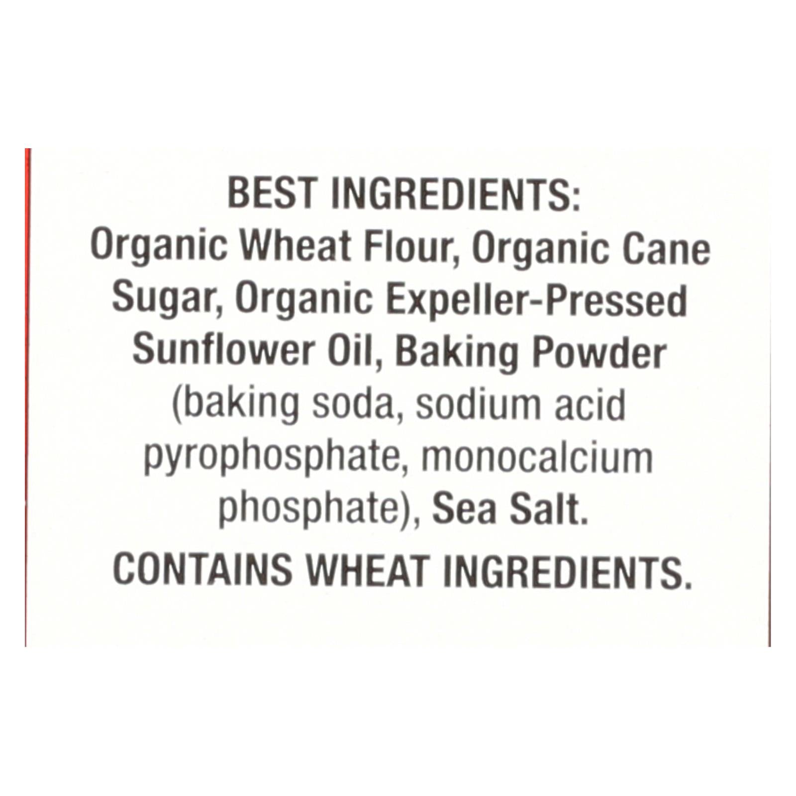 ingredients : organic wheat flour;organic cane sugar;organic expeller-pressed sunflower oil;baking powder (baking soda, sodium acid pyrophosphate, monocalcium phosphate);sea salt