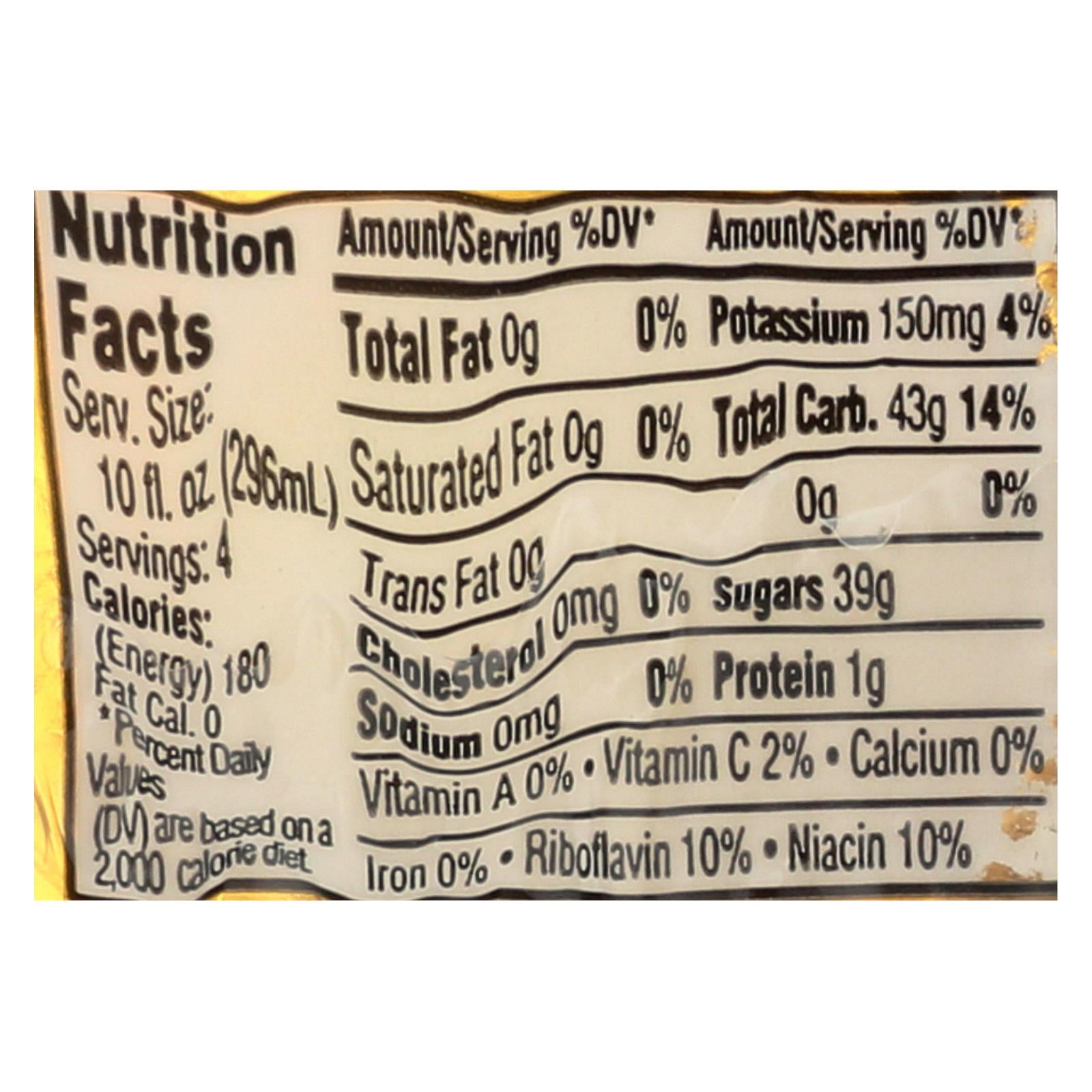 Martinelli’s apple juice is a pure apple juice made from natural ingredients. Squeezed from american-grown apples, martinelli’s apple juice is free from unnatural and unnecessary additives or ingredients, allowing the natural flavor of the apple juice to remain uncompromised. This product is kosher and 100% juice. Each case of martinelli’s apple juice contains four 10 fl. Oz. Of apple juice with 3 servings per bottle and 180 calories per serving. Refrigerate after opening. See nutrition facts panel for allergens.