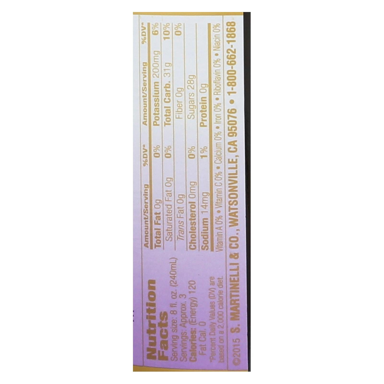 Martinelli’s sparkling apple grape juice is an elegant beverage made from natural ingredients. Squeezed from american-grown apples, martinelli’s sparkling apple grape grape grape juice is free from unnatural and unnecessary additives or ingredients, allowing the natural flavor of the apple juice to remain uncompromised. This product is kosher and does not contain alcohol. Each bottle of martinelli’s sparkling apple grape grape grape juice contains 25.4 fl. Oz. Of apple juice with 3 servings per bottle and 120 calories per serving. Refrigerate after opening. See nutrition facts panel for allergens.