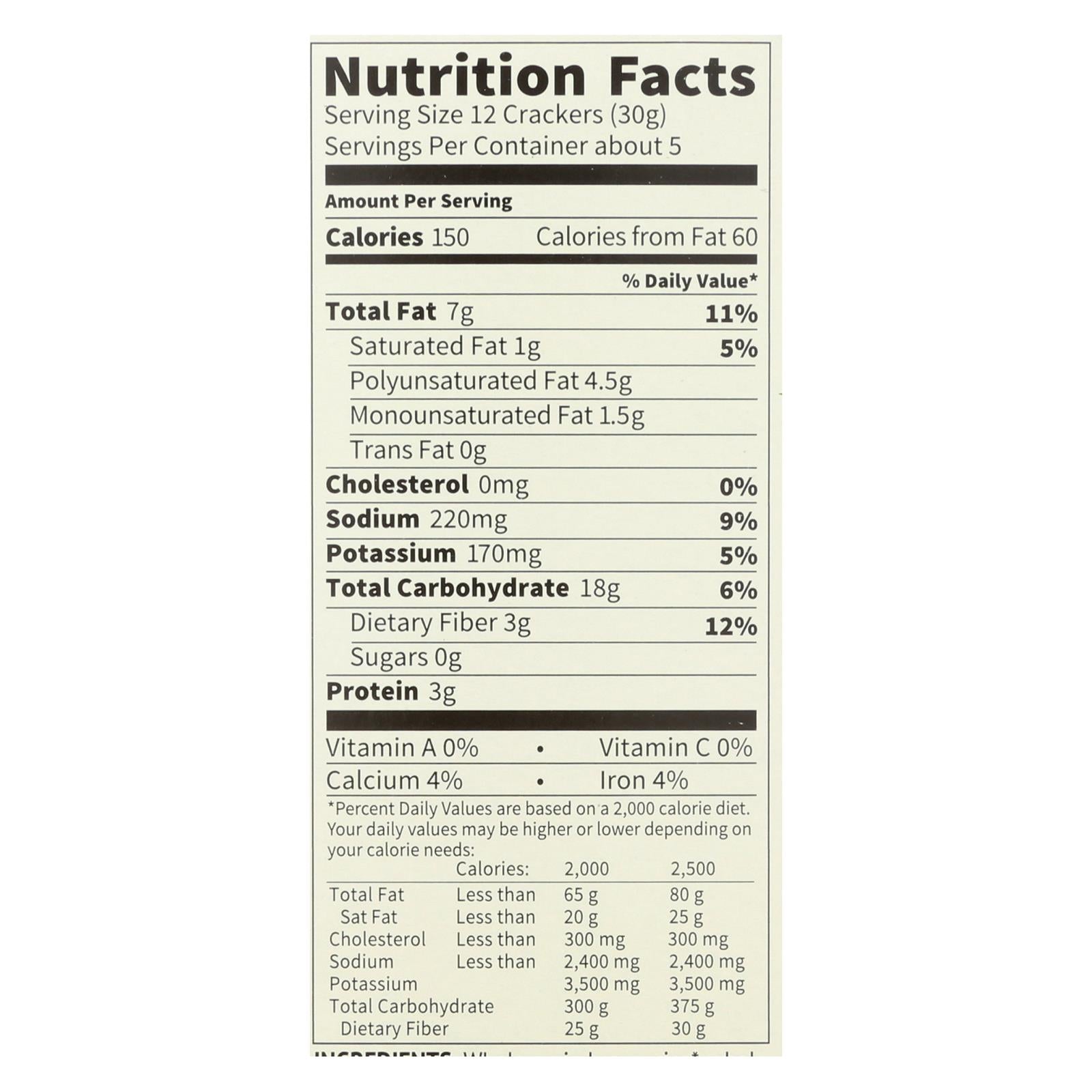 Mary’s gone crackers, super seed crackers in basil & garlic are a whole-grain, gluten-free and non-gmo snack option. Every 4.5 oz. Box contains about 5 servings. Our basil and garlic super seed crackers are packed with seeds and loaded with nutrition. Savor the rich, indulgent taste of sunflower and pumpkin seeds, organically grown whole grains and inspired flavors that could only come from mary’s. See nutrition facts panel for allergens.
