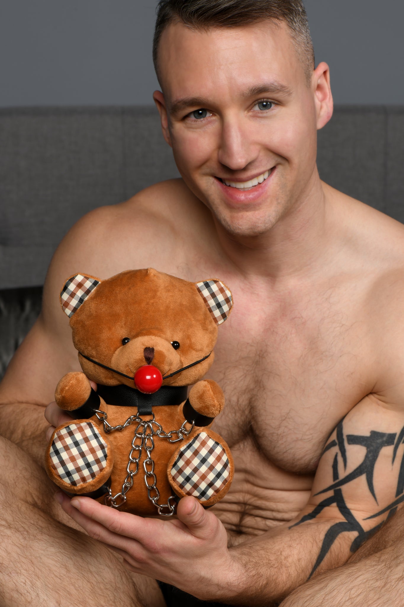 Master Series Gagged Bondage Bear from XR Brands. Give this Gagged Bear as a gag gift or keep it for yourself! It is just big enough to cuddle but does not take up too much space! Add it to your collection for Littles to play with, give it to your submissive during aftercare, or keep it with your pillows! With a Collar, Wrist and Ankle Cuffs and Nickel free Chains connecting them, this little Bear is restrained for your pleasure and amusement! Made out of Polyester, Polyurethane PU Faux Leather, Plastic and Nickel free Metal. Measurements of Gagged Bondage Bear: overall 8.6 inches in length by 6.8 inches in width by 5.5 inches in depth. Materials: Polyester Fur, PU Faux Leather Bondage accessories, ABS Plastic Ball Gag, Metal chains. Color: Brown. Adults only please. Note: keep out of reach of children. Key features: Great Gag Gift!: This Gagged Teddy Bear makes a great gag gift for someone special! It has Ankles and Wrist Cuffs, Chains Binding its tiny arms, and a Ball Gag in its furry little mouth! Cuddly adult toy. The perfect sized stuffed animal to cuddle with. Great for aftercare! Nickel free Metal. All metal used in Nickel free and body safe. Categories: Party Games, Gifts, Supplies, Bondage, Fetish, Kink, Adult Gags, Gifts and Novelties, Adult Party Games. 2023.