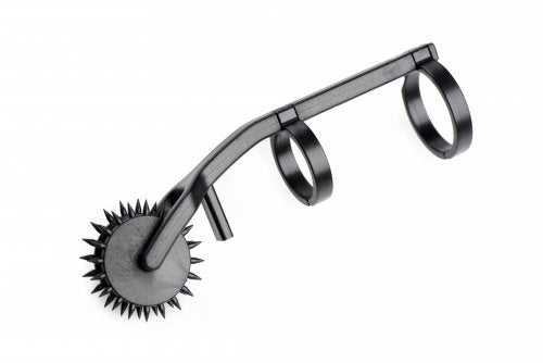 Use a light touch to offer your partner fluttering, delicate sensation play or dig the small, sharp spikes in deep to really get their attention. This lightweight double pinwheel finger toy is great for any part of the body you can imagine. Each wheel features 20 small spikes, with two rings that are designed to fit most fingers. Prick, tickle, or punish- the play is up to you! Measurements: 4 inches in length, inner ring diameter 0.8 inches Material: ABS plastic Color: Black