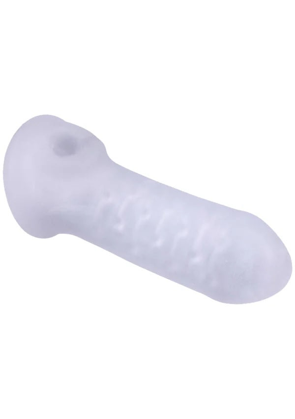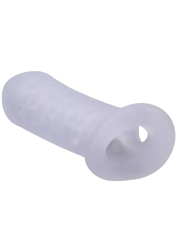 Features: Handcrafted from ULTRASKYN, for The Ultimate Feel Textured Interior Stimulates Wearer's Penis Adds Thickness and Length Built-in Ball Strap Delays and Intensifies Orgasms Can Be Used as a Stroker for Solo Play Visually Stimulating Sheer Material Soft and Stretchy for a Snug Fit Phthalate-Free, Body-Safe