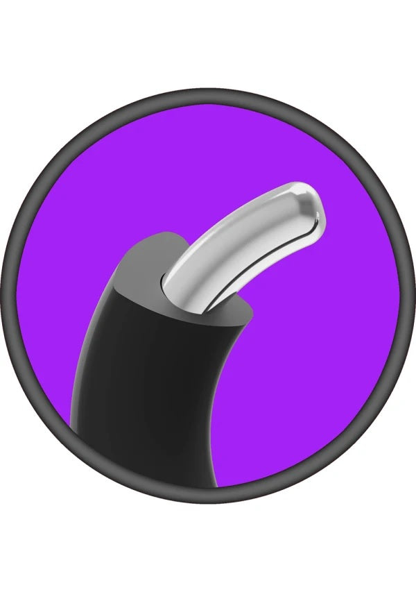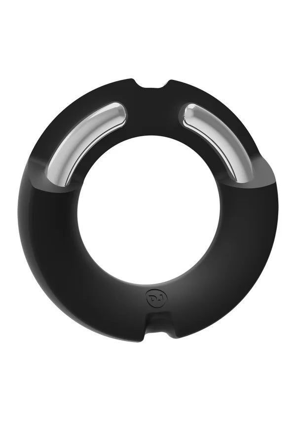 Looking for something stronger? This exclusive design combines the extreme feel of a stainless steel cock ring with the precision fit of durable silicone. Featuring an open-sided metal ring sheathed in a sturdy, stretchable band of premium silicone, this design strikes the perfect hard/soft balance of stretch and rigidity. A beveled edge intensifies the pressure in all the right places to complete the experience.