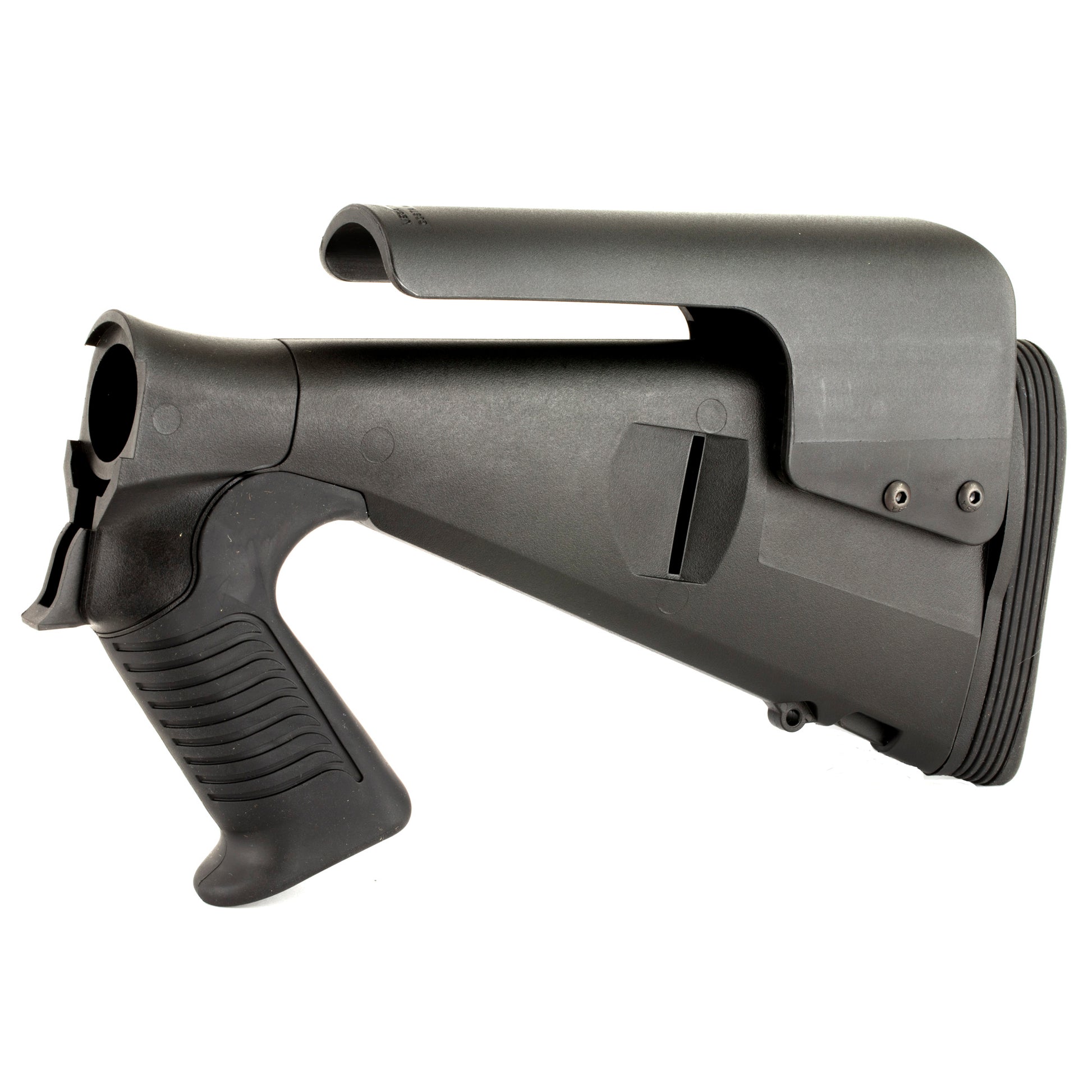 Mesa Tacticals Urbino Pistol Grip Stock for the Benelli M4 is very popular in the law enforcement market due to the shorter length of pull, allowing the user to wear body armor or bulky clothing without extending their reach. The reduced length-of-pull (LoP) makes the Urbino the first truly tactical stock for the Benelli M4. The Urbino Tactical stock is durable, easy to shoulder and will not slip. It is a fixed-length pistol grip shotgun stock made from injection-molded glass-filled nylon. Developed to meet the needs of law enforcement and military operators, the rugged Urbino Tactical stock features a 12 1/2" inch LoP, soft urethane rubber grip, adjustable cheek riser and Limbsaver Butt pad.