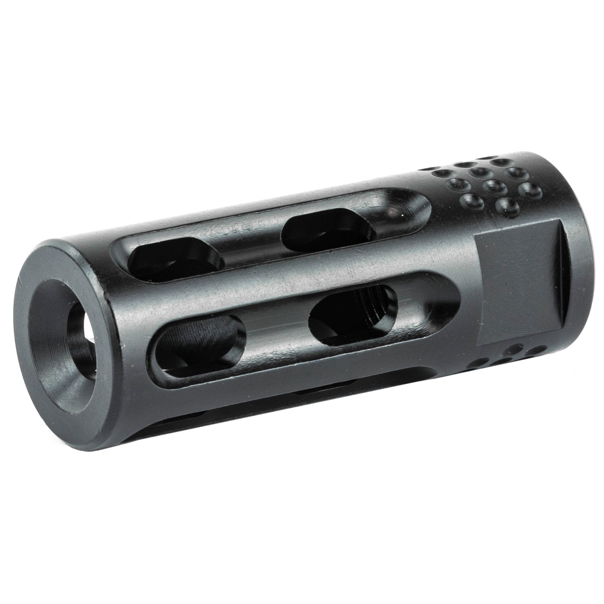 Disperses gas in 6 distinct directions. This feature aids in wide gas flow to limit recoil and muzzle climb. There are slots all the way around. Slim profile matches the contour of the M4 style AR barrel, making for that clean, sleek transition.