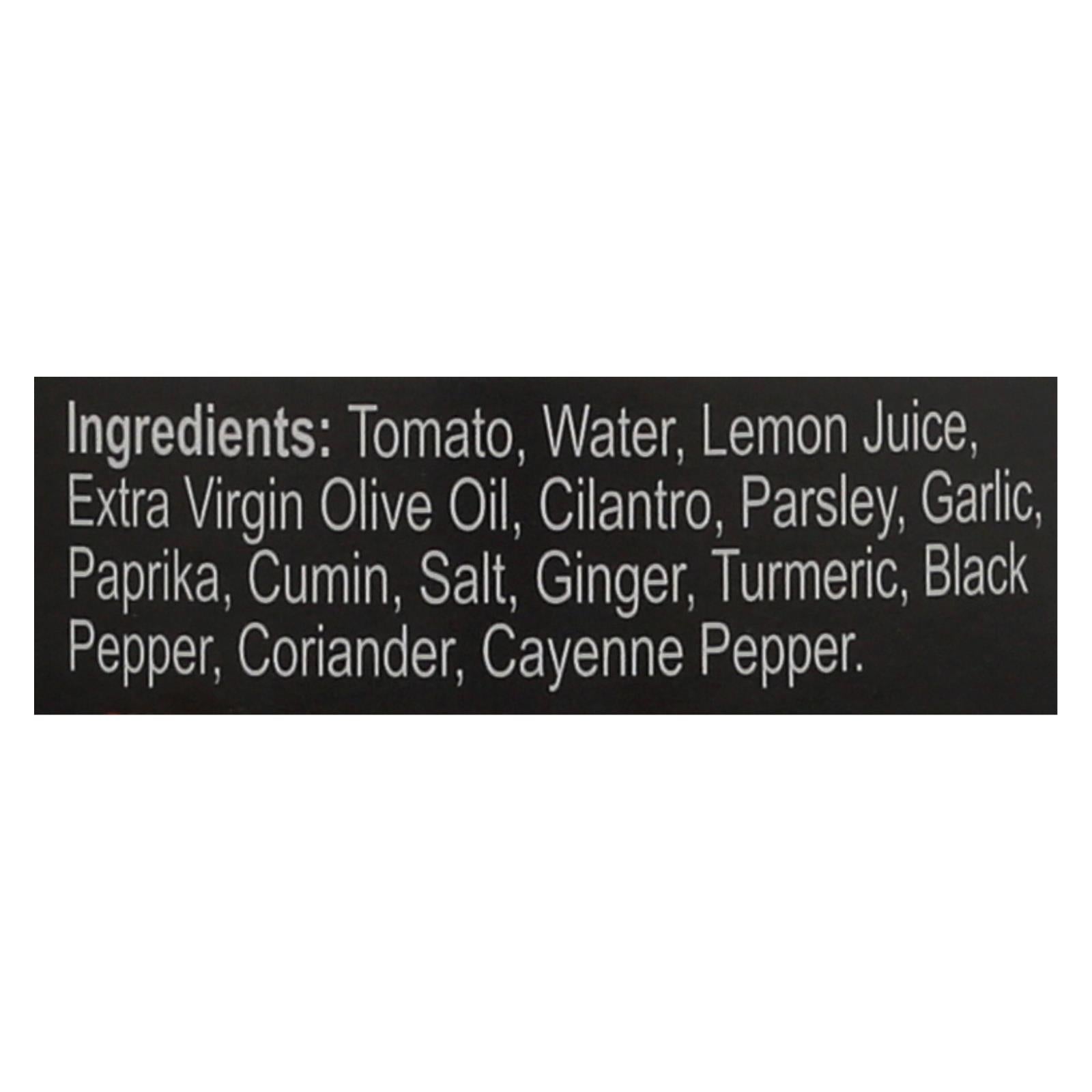 ingredients : tomato;water;lemon juice;extra virgin olive oil;cilantro;parsley;garlic;paprika;cumin;salt;ginger;turmeric;black pepper;coriander;cayenne pepper