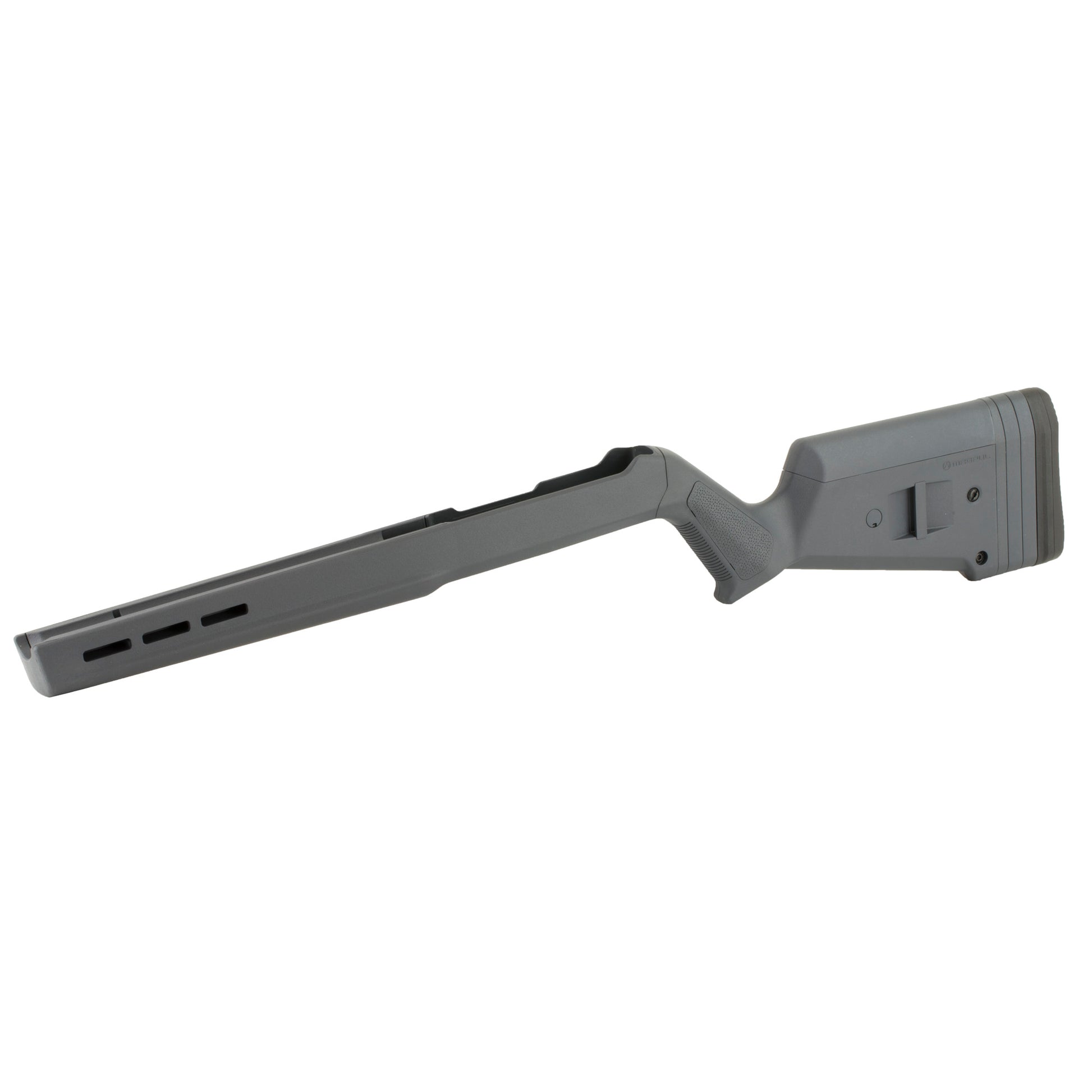 The Magpul Hunter X-22 chassis is an ergonomic" full-featured stock for the ubiquitous Ruger 10/22 rifle. Made from high quality reinforced polymer" the Hunter X-22 features an ergonomic grip" adjustable length of pull and comb height to fit a wide variety of shooters" multiple sling mounting options" a non-slip rubber butt-pad" and M-LOK(R) slots for accessory attachment. The Hunter X-22 fits standard Ruger 10/22 .22 LR pattern rifles with no gunsmithing" and a reversible barrel tray ensures proper fit with factory pencil profile as well as heavy bull barrels. Made in U.S.A.