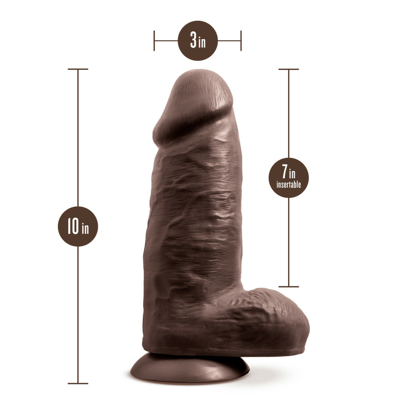 Au Naturel Chub 10 inches Dildo Chocolate Dark Brown from Blush Novelties. The Au Naturel Chub lets you explore your desires, with its ultra realistic Sensa Feel layers. Chub's soft, yet rigid and erect form is enhanced by Flexi Shaft technology, which allows flexibility of the adult toy within your body. Every detail, from firmness to skin and vein texture, is carefully crafted for maximum life like effect. All for your pleasure. Chub Dildo delivers an advanced amount of girth and length, with a rounded, tapered head for easier insertion. Its strong suction cup base will stick to almost any smooth surface and is harness compatible. X5 Thermoplastic Elastomers TPE on the inside and X5 Plus Thermoplastic Elastomers TPE on the outside, Au Naturel toys are phthalate free, latex free. Easy to clean.