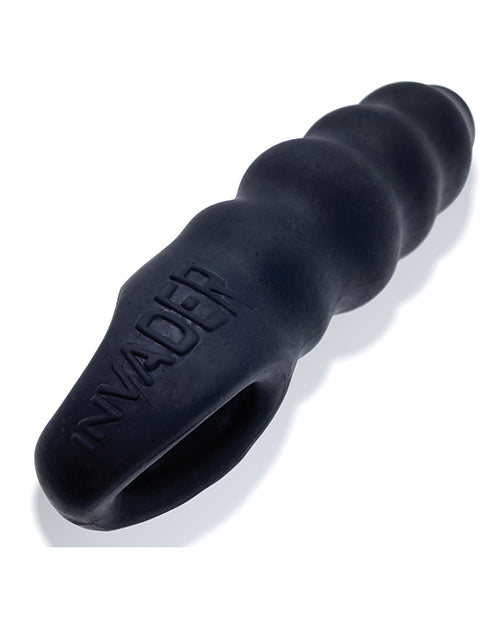 Invader Cocksheath Black Ice from Oxballs. Oxballs invented the modern cocksheath by morphing our original cocksling to a sheath creating the first sheath that really stay on no matter how hard you play. Invader is that good and more, our first open ended sheath with wavy ripples on the shaft, and texture inside, So everyone gets max stimulation. Made of Plus Silicone, our slick soft Silicone and stretchy Thermoplastic Rubber TPR blend.