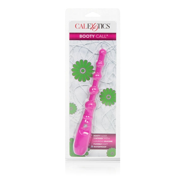 Booty Call Booty Flexer . Tapered, beaded probe flexes and bends for multi-directional positioning. 3 intense speeds of vibration. Easy push button control. Waterproof for play in and out of the water. Safe and pure for body and pleasure made using phthalate free material. Silicone beads, button, ABS plastic with polyurethane PU Cote controller, ABS plastic cap. 5.75 inches by 1 inch. Vibrator requires 2 AAA batteries, not included.