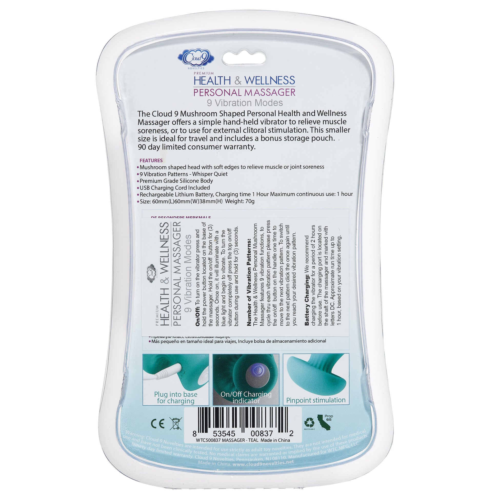 Cloud 9 Health and Wellness Personal Mushroom Massager. The Cloud 9 Mushroom Shaped Personal Health and Wellness Massager offers a simple handheld vibrator to relieve muscle soreness, or to use for external clitoral stimulation. This smaller size is ideal for travel and storage and can be used to relieve soreness on your joints, neck or use as a personal stimulation device for the clitoris. This smaller massager is designed to help ease the joint pain, muscle stiffness and joint swelling.