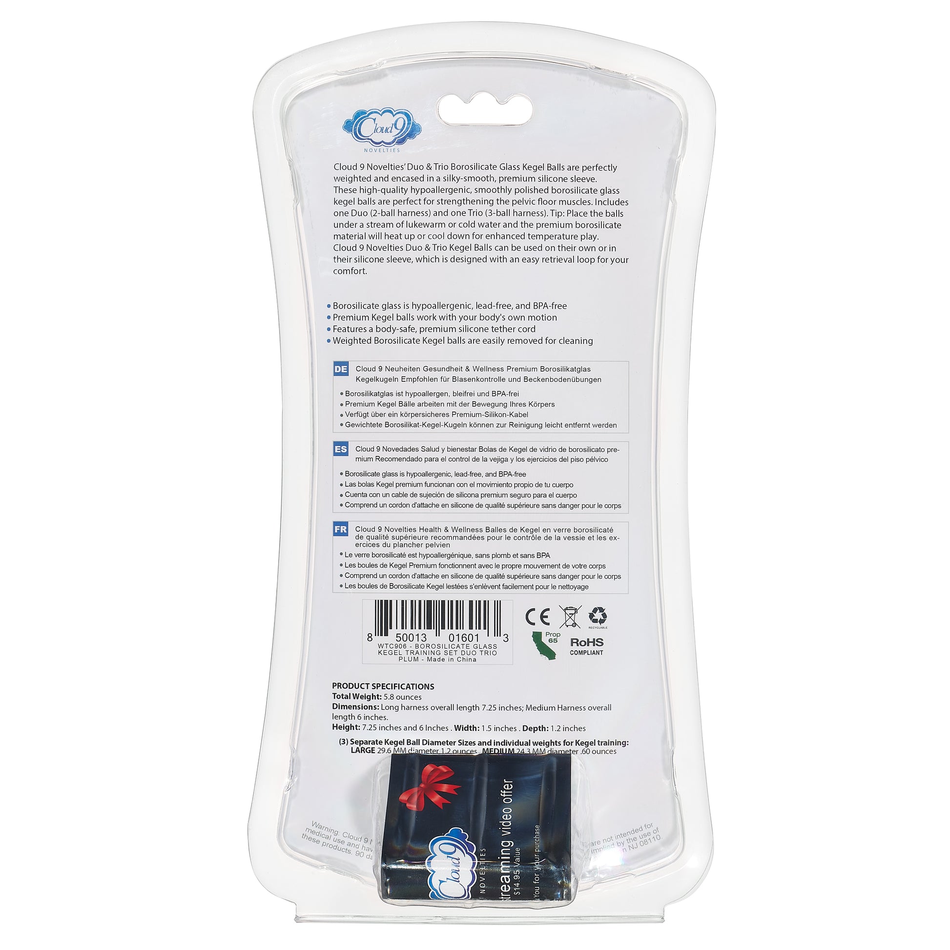 Cloud 9 Novelties Duo and Trio Borosilicate Glass Kegel Balls are perfectly weighted and encased in a silky smooth, premium silicone sleeve. These high quality hypoallergenic, smooth polished borosilicate glass kegel balls will help strengthen the pelvic floor muscle. Ideal for temperature play. Cloud 9 Novelties Health and Wellness Premium Borosilicate Glass Kegel Balls. Recommended for Bladder Control and Pelvic Floor Exercises. Borosilicate glass is hypoallergenic, lead free, and BPA free. Premium Kegel balls work with your body's own motion.