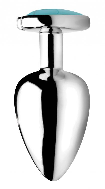 Booty Sparks Gemstone Large Heart Anal Plug Turquoise from XR Brands. Revitalize your booty with the positive energy of this genuine heart shaped Turquoise Gem butt plug! The real Turquoise gem embedded in the base of this metallic butt plug adds a splash of blue to your backdoor, all the while protecting your aura from negative energy. Perfect for anal warm ups on your own or play with a partner! Constructed with a body safe aluminum alloy that is easy to clean and compatible with most lubes so you can play with your favorite slippery stuff. Measurements: overall length 3.7 inches, insertable length 3.2 inches, diameter at widest point 1.6 inches. Materials: Aluminum alloy, Turquoise. Color: Blue, silver. Key features: genuine heart shaped Turquoise gem. Fill your backdoor with positive energy of turquoise; revitalize your derriere and protect your aura from negative energy. Comfortably weighted. Add a downward pull to your hole for additional stimulation and pleasure thanks to the weighty nature of these metallic butt plugs. Nickel Free Aluminum Alloy the aluminum alloy material provides a deliciously hard and smooth mass for your ass to squeeze. Compatible with most lubes. Great for temperature play. Warm or chill this gemstone butt plug in a bowl of water to add another layer of sensation while you play. Perfect for veteran butt plug users looking for a new way to play.